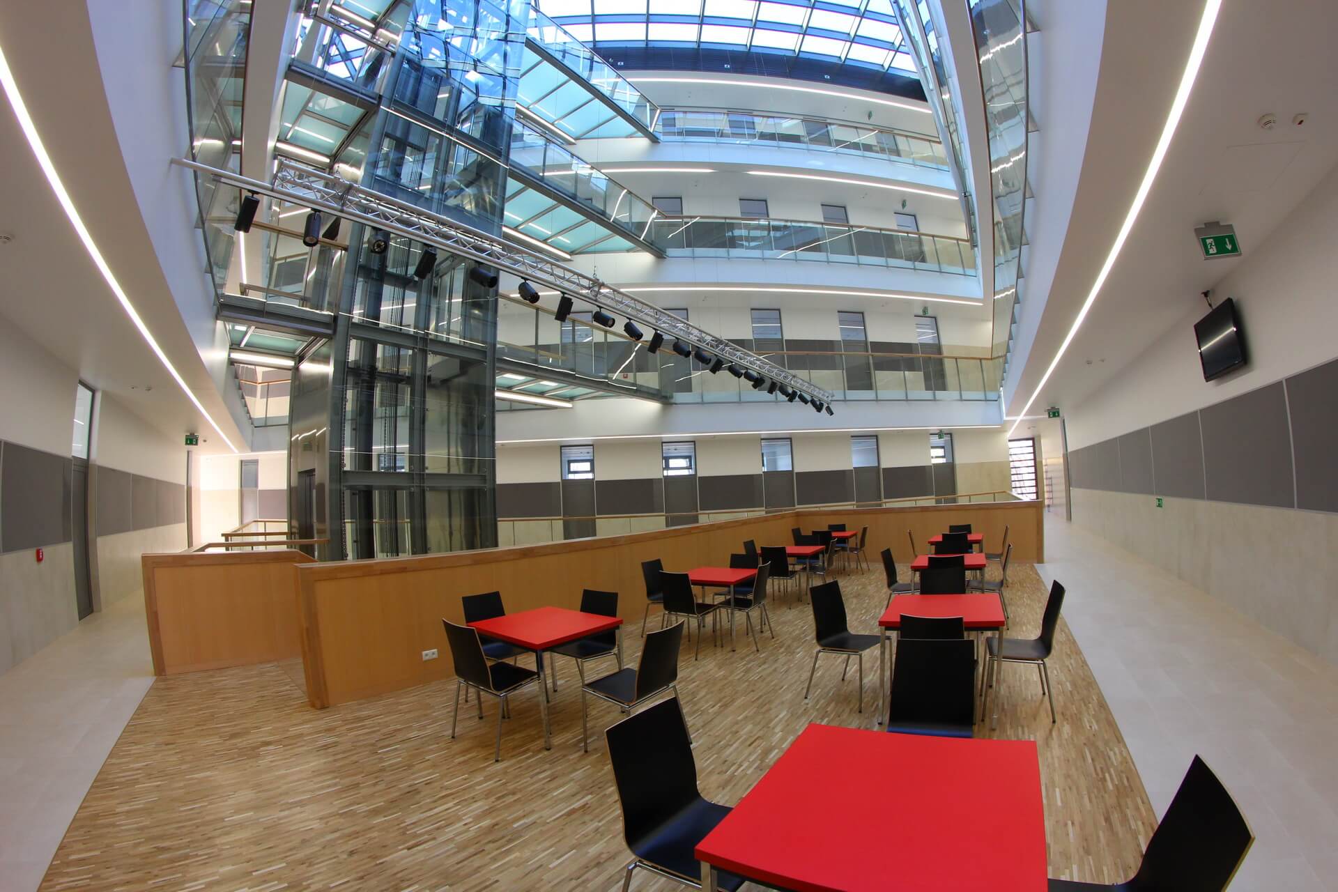 The first of two buildings of the Faculty of Biotechnology is a modern facility for research, education and administration. The building includes over 40 laboratory rooms, 4 auditoriums and 20 offices, 5 overground floors and one underground storey with the surface of 4590 sq m.